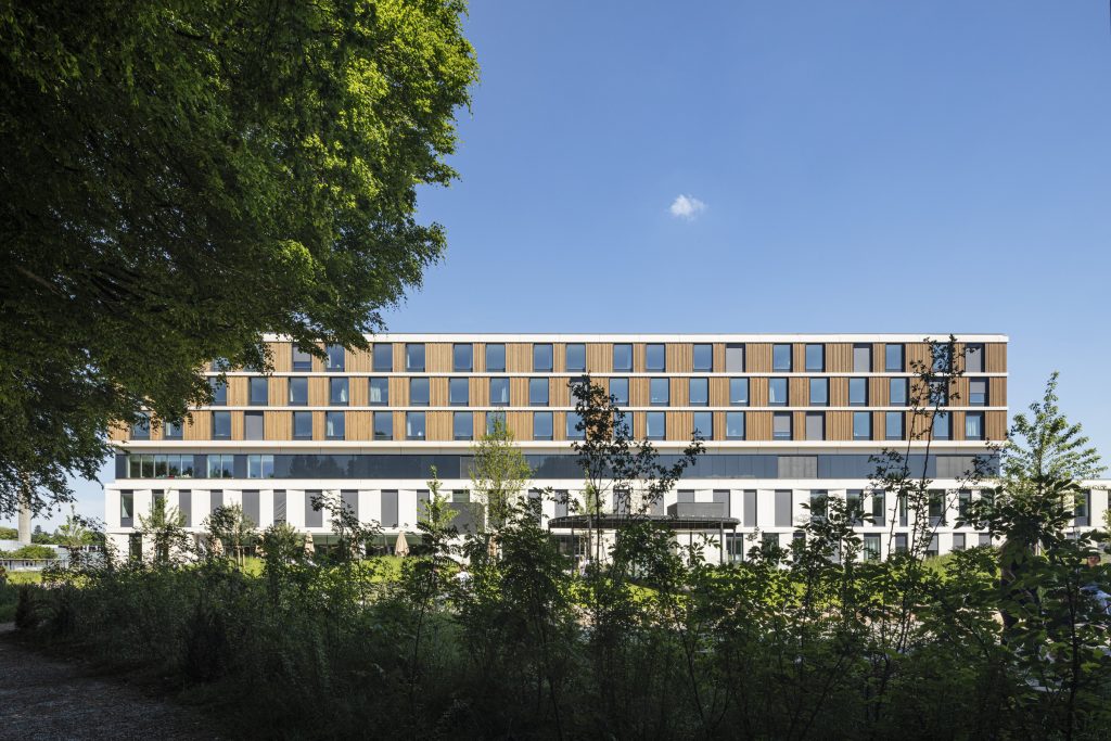 Besonders hervorgehoben wurde der integrative Entwurfsansatz des KSB, der funktionale Effizienz, hohe Aufenthaltsqualität und das Wohl von Patienten sowie Mitarbeitenden zu einem stimmigen Ganzen verbindet.