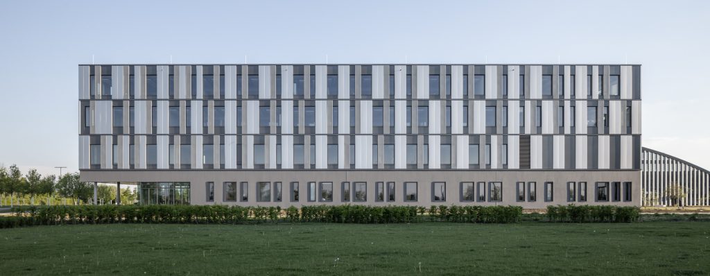 Architektonisch verbindet das Gebäude Funktionalität, Offenheit und Nachhaltigkeit. Großzügige Kommunikationszonen, natürliche Belichtung und eine klare Struktur schaffen ein inspirierendes Arbeitsumfeld, das wissenschaftlichen Austausch und technologische Innovation fördert. Die Prüfstände ermöglichen mechanische, thermische und chemische Tests unter realen Bedingungen und werden durch spezialisierte Kontrollräume und Labore ergänzt.