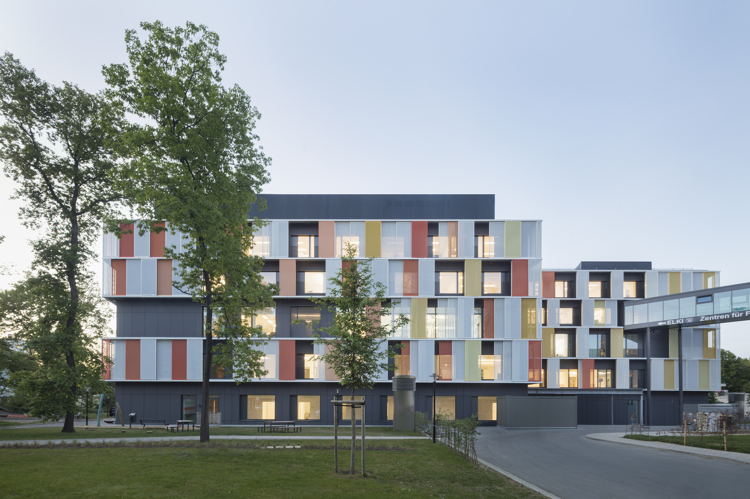Im Erdgeschoss befinden sich eine großzügige Empfangshalle, ein Hörsaal für 100 Personen, die Verwaltung, Technikräume und die zwei wichtigsten Laborbereiche samt Mikroskopie und Kernspinresonanz. In den vier Obergeschossen darüber gruppieren sich flexible Labore und Büroräume um zwei großzügige Atrien, die so die Kommunikation innerhalb der Forschungsabteilungen fördern.