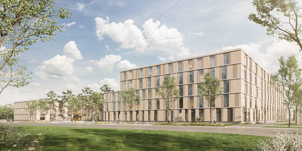 Die Architektur fördert interdisziplinäre Zusammenarbeit durch offene Kommunikationsräume, flexible Nutzungszonen und lichtdurchflutete Aufenthaltsbereiche.